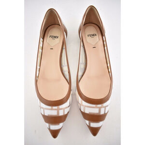 Fendi White PVC Colibri Brown Leather FF Logo Pointed Ballerina Ballet Flat 38