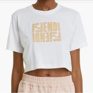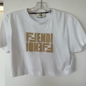 Elegant Fendi t-shirt in white. Features logo tag detail. Ideal for everyday style.