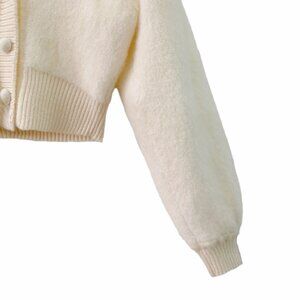 White V-neck short cardigan with double F embroidery, made of mohair wool, single-breasted