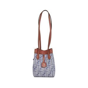 •Eight-magnet fastening •Double long leather handle •Leather key ring with metal Fendi Roma lettering at front •Interior: one main compartment; lined •Brown calfskin leather details •Gold-toned metal hardware •Foldable and convertible origami-style denim-effect FF jacquard design; bucket bag, when the magnets join at center, and shopper bag, when pulling the short tabs at sides •15 X 18.5 X 15 cm; handle drop: 34 cm •Blue color •59% Cotton, 21% Polyester, 20% Polyurethane •Made in Italy