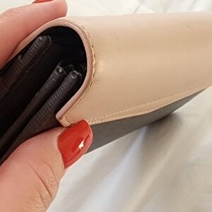 Interior: Multiple card slots, bill compartments, and zippered coin section
