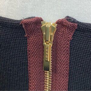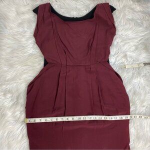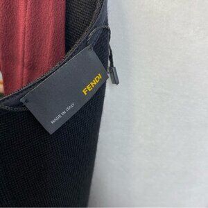 Fendi women's size IT 40 dress, it has a scoop neckline, burgundy silk overlay with black knit body, hidden open pockets, tapered waist, gold back exposed zipper with embossed Fendi on pull, cap sleeves and mini length. Materials lana wool, silk. Care Dry Clean. Condition is preloved very good as shown in pictures. Please preview measurements to ensure fit. Dress is authentic.