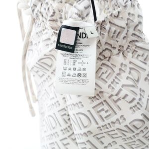 Fendi X Skims Loose Fitting Pants - Size Large. NWT. Elastic waist and cuffs. White nylon with FENDI SKIMS printed lettering. Original packaging included (hanger and box).