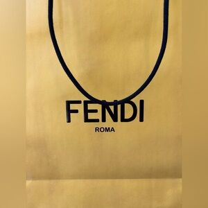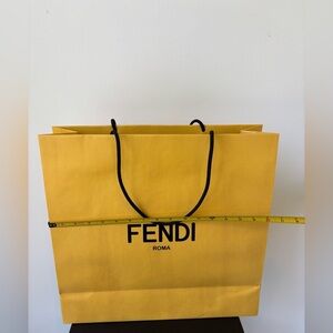 Stylish Fendi shopping bag in vibrant yellow. Features black handles and logo.
