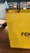 Vibrant yellow Fendi tote. Features sturdy black handles. Ideal for chic outings.
