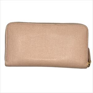 Fendi Zip Around Leather Wallet in Dusty Rose Beige and Gold Tone Hardware