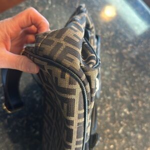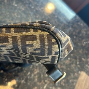 Stylish Fendi backpack with iconic monogram. Features dual front pockets and adjustable straps. Perfect for everyday use.