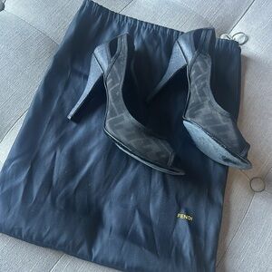 Fendi Zucca Black Mesh Logo Peep Toe Heel Size 38