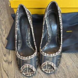 💕Fendi Zucca Block Heel (with Box and Dustbag)