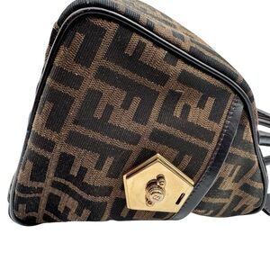 Stylish Fendi satchel with iconic monogram. Rich brown and black tones. Perfect for everyday elegance.