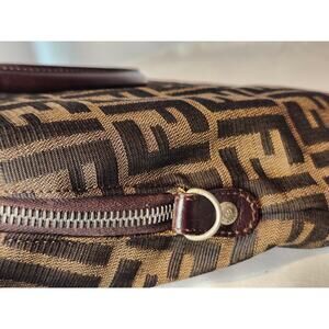 Fendi Zucca Canvas Dome Satchel Handbag Brown Leather Trim FF Silver Hardware