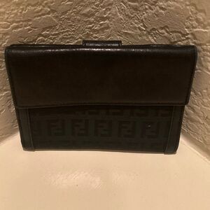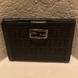 Fendi Zucca Canvas Leather Bifold Compact Wallet Black Logo Print Monogram Luxe