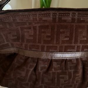Fendi Zucca Chef FF Shoulder Bag in Brown Suede