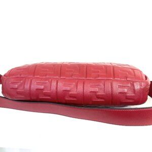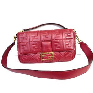 Fendi Zucca Embossed Baguette Red Calf Leather Satchel