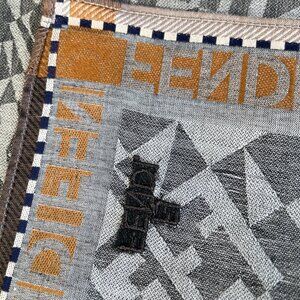 Add a touch of Italian luxury to your wardrobe with this vintage Fendi cotton scarf featuring an intricate geometric Zucca motif. The design showcases the FENDI name woven along the border and an embroidered logo detail in one corner — a subtle nod to the brand’s craftsmanship.