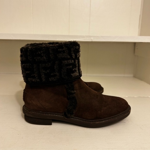 Fendi Zucca FF Logo Suede Combat Boots Size 5.5 (Euro 36.5)
