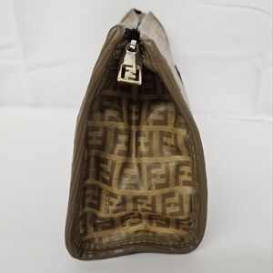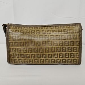 Fendi Zucca FF Monogram Vintage Canvas And Leather Clutch Bag In Camel And Brown