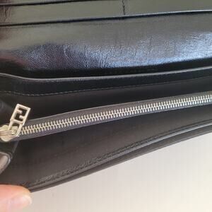 Fendi Zucca Wallet Nylon Leather Wallet Black Purse Envelope Large Logo