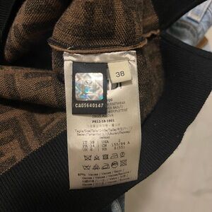 Fendi Zucca sweater type top. Fits really well. I am a true size small. It’s a little loose on me. Comfortable.