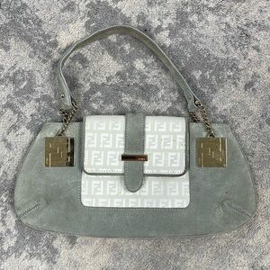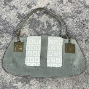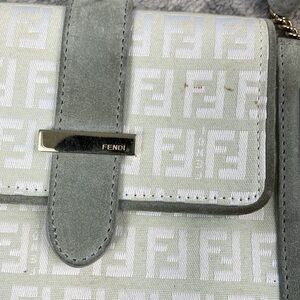 Fendi Zucchino Suede Pochette Shoulder Bag Small Flat Monogram Logo
