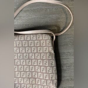 Fendi Zucchino Vitello Pink Canvas Crossbody or Shoulder Bag | Fair Condition