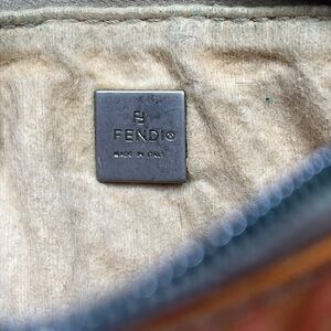 This is a beautiful vintage Fendi Zucco Zucchino Orange Peach Clear Coated Canvas Zip Pouch Clutch Bag. Felt interior shows minor scuffs. Zipper works perfectly. Leather zipper pull. Minor wear to the edging. No tears. 7” x 4.5” fits an iPhone.