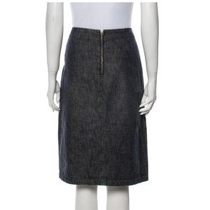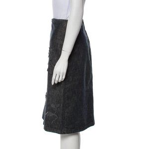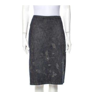 Fendi embellished denim skirt. Applique flowers in front (same denim fabric). Zip closure on back.