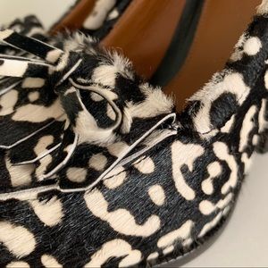 Fendi pony hair high heels. Chunky wooden heel. Platform. Oxford style toe detail with tassel and ribbon. All pony hair with special pattern. Excellent condition. Approx 4.5" heel. Size 37. Made in Italy. (Dark academia, cowgirl aesthetics)