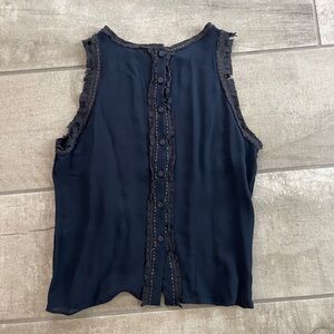 Elegant navy sleeveless top with delicate lace detailing. Perfect for any occasion.