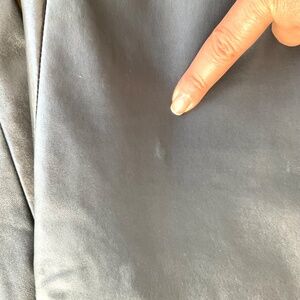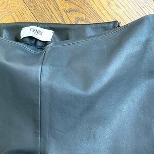 Fendi straight leg Black & Blue leather pants. Black leather on the front side and Blue leather on the back of the pant. They have been altered so please check the measurements. These leather pants are in good condition with normal wear except a spot on the top left pant leg - please see photo. Size 40, waist 27”, inseam 28”, outside seam 37” and width of the bottom of the leg 5 1/2”. 20% Black Friday Price Drop!!