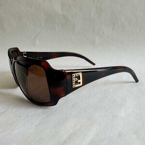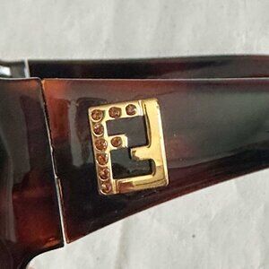 - both hinges have gold Fendi double F logo with brown rhinestones