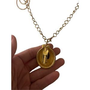 Authentic repurposed Fendi Pendant on a NON-BRAND 9 inch gold plated choker. Choker is unique and adorned with circles. Excellent piece #Fendi
