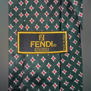 Fendi Green Geometric Silk Tie