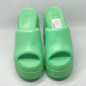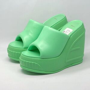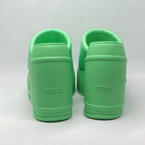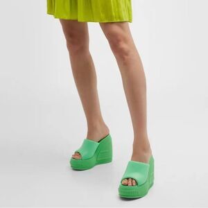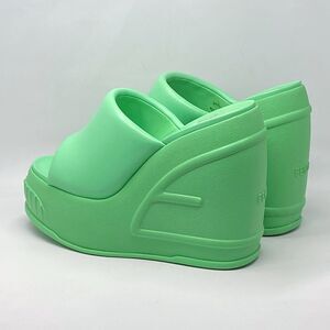 These sandals are crafted of leather and finished with a logo-embossed wedge heel.