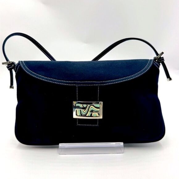 Fendi Mama Double Flap Navy Blue Canvas Limited Edition Baguette Preloved Purse