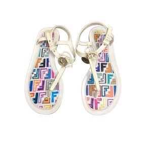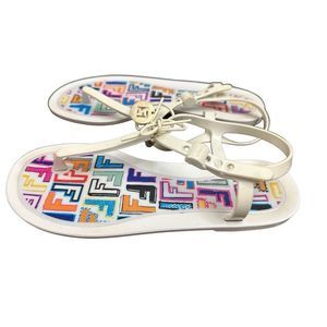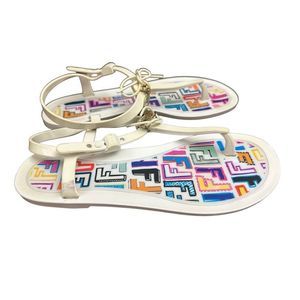 Fendi White Jelly Logo Charm Sunny Flat Sandals Made in Italy Size 41