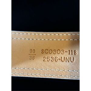 It is in good condition. Minor discoloration in the belt buckle area and a few blue pen marks (see photos). If the belt is on of the two smallest settings, the ink does not show.