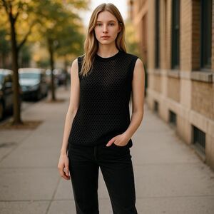 This sleek black tank top by Fendi features a fitted silhouette and a minimalist design, making it a versatile wardrobe staple. Crafted from a smooth knit fabric, it offers a refined texture and a sophisticated look. The clean edges and tailored fit ensure a polished appearance for any occasion.