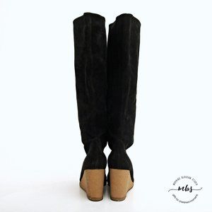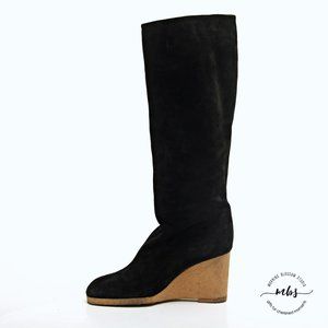 Fendissime by Fendi Suede Wedge Tall Boots in Black Women Size 5.5