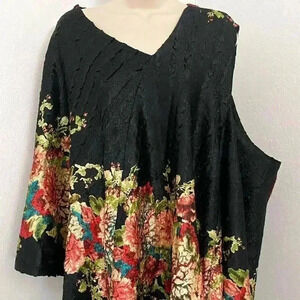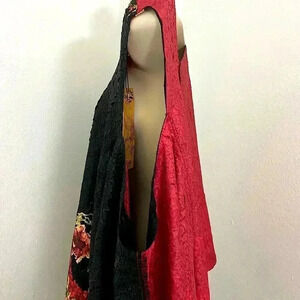 Feng Cheng Asian Silk Floral Asymmetric Poncho Lagenlook Layering Boho New