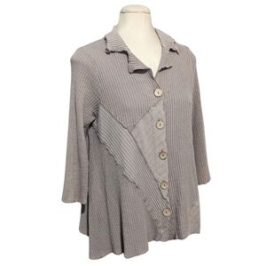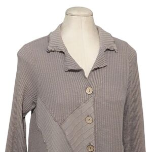 Fenini Art to Wear Shirt Jacket Taupe Asymmetric Hem Button Cardigan Medium