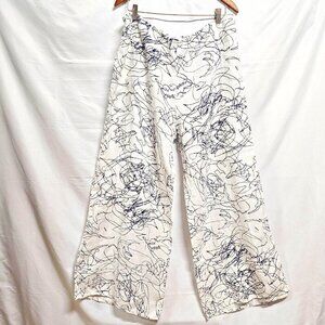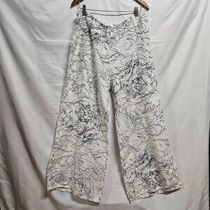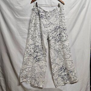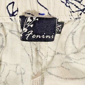 Fenini Flat Front Women Palazzo Size 2X White 100% Linen