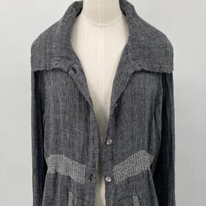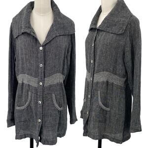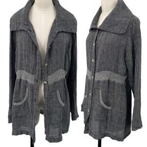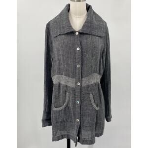 Fenini Linen Jacket Button Down Wide Collared Longline Pockets Grey Womens XS