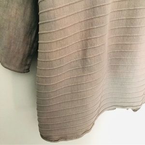 Lovely, with ribbing down the sides and around the neck. It has a v neck and 3/4 sleeves and buttons up in the front.