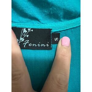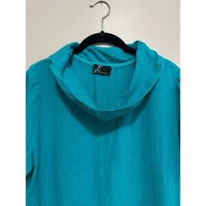 Fenini Teal Women’s 100% Linen Dress Cowl neck Size Small