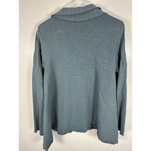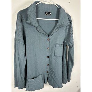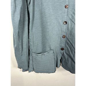 Fenini Womens Medium Top Blouse Lagenlook Button Up Long Sleeve Pockets Collared