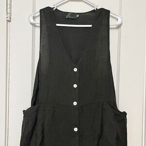 Fenini midi dress size XS full button oversized pockets sheer lagenlook black