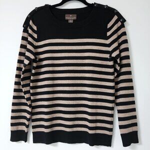 Great Condition: Gently preowned. No visible flaws. 100% merino wool – soft, breathable, and luxe. Shoulder button detailing adds a nautical or military-inspired touch. Lightweight yet warm — perfect for fall through spring