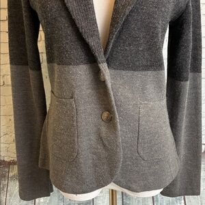 Fenn Wright Manson Blazer Style Wool Blend Cardigan Size Large Colorblock Grey with Nautical Silver Buttons Preppy Academia Old Money