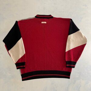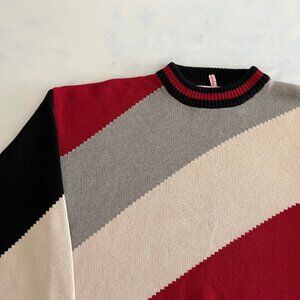 -Details: dry cleaned, crewneck, heavyweight, diagonal color block pattern, bold and colorful, Harajuku-style sweater, in excellent pre-loved condition